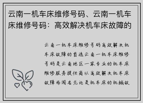 云南一机车床维修号码、云南一机车床维修号码:高效解决机车床故障的首选
